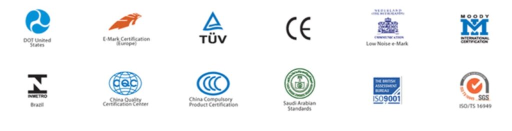 All tires produced for export to Europe satisfy the European E-mark safety standard.